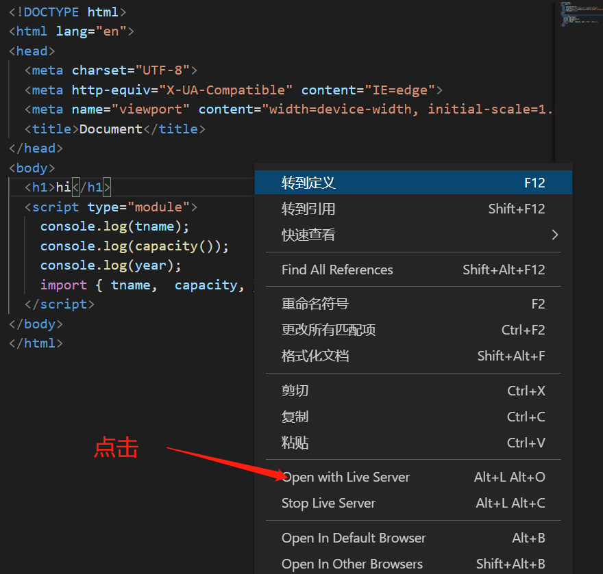 5、最后选中THML文件,右键选择"open with Live Server"。
