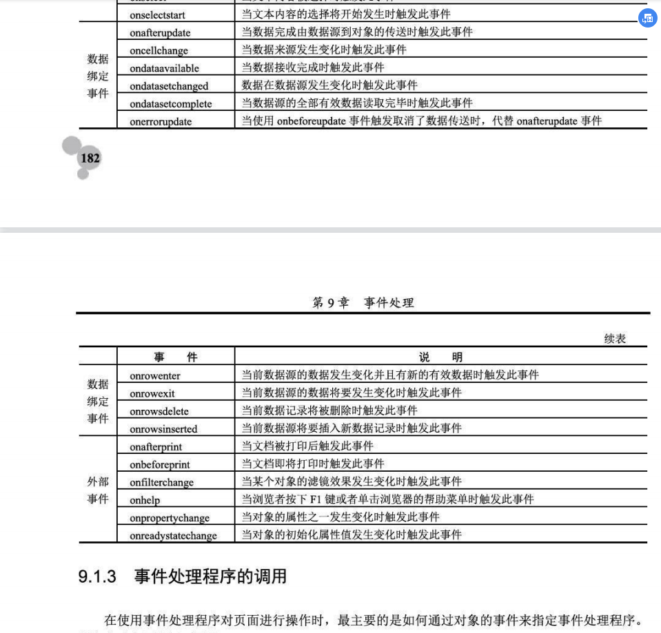 js是基于对象(object-based)语言,它的一个最基本的特征就是采用事件驱动(event-driven)。它可以使在图形界面环境下的一切操作变得简单化。通常鼠标或热键的动作称为事件(event)。由鼠标或热键引发的一连串程序动作,称为事件驱动(event driver),而对事件进行处理的程序或函数,称为事件处理程序(event handelr)。 事件处理的过程分为三步: 1、发生事件。 2、启动事件处理程序 。 3、事件处理程序做出反应。 其中,要使事件处理程序能够启动,必须通过指定的对象来调用相应的事件,然后通过该事件调用事];mgfxz46890-=理程序。事件处理程序可以是任意javascript语句,但是一般用特定的自定义函数(function)来对事件进行处理。 -js中常用事件