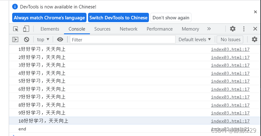 // continue语句,只能用在循环中,用于跳过当次循环,还会继续执行后面的循环