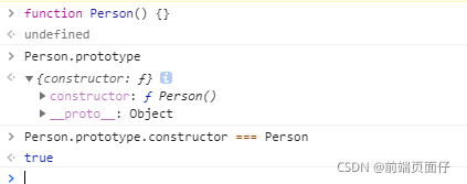 每个对象都有一个隐藏的属性——“__proto__”,这个属性指向创建它的构造函数的原型对象。即:person1.__proto__ === Person.prototype?