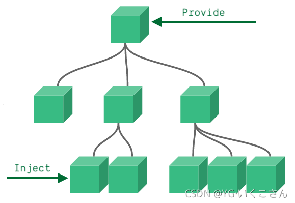 为了增加 provide 值和 inject 值之间的响应性,我们可以在 provide 值时使用 ref 或 reactive。