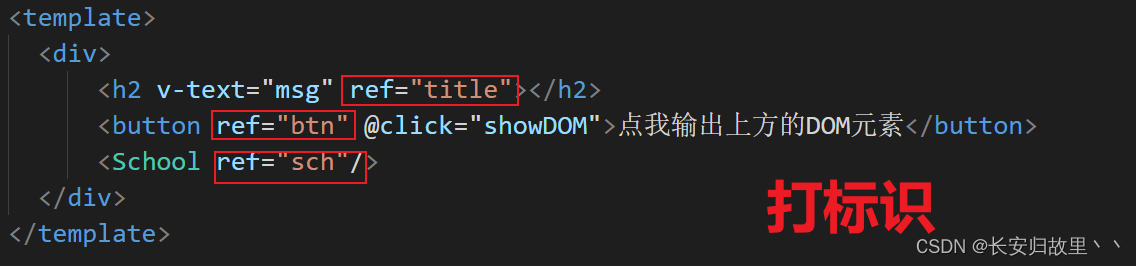 ????????打标识:<h1 ref="xxx">...</h1> 或 <School ref="xxx"><School>?