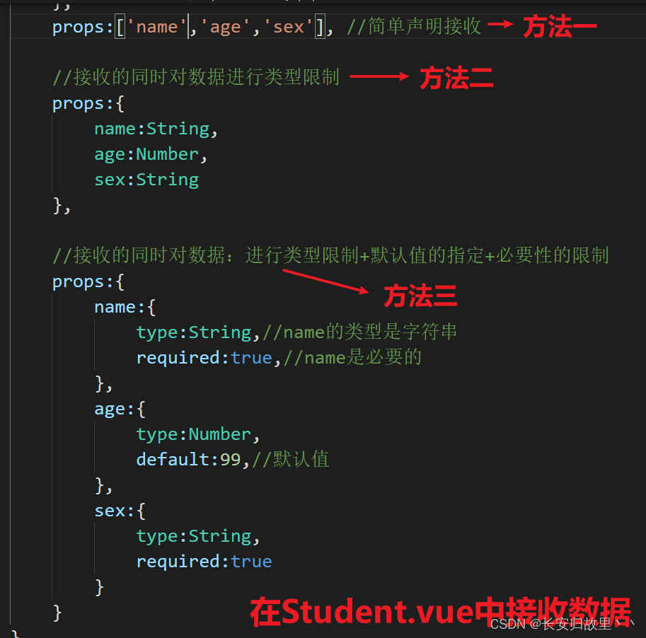 备注:props是只读的,Vue底层会监测你对props的修改,如果进行了修改,就会发出警告,若业务需求确实需要修改,那么请复制props的内容到data中一份,然后去修改data中的数据