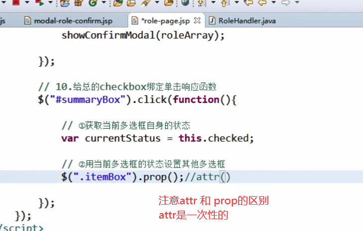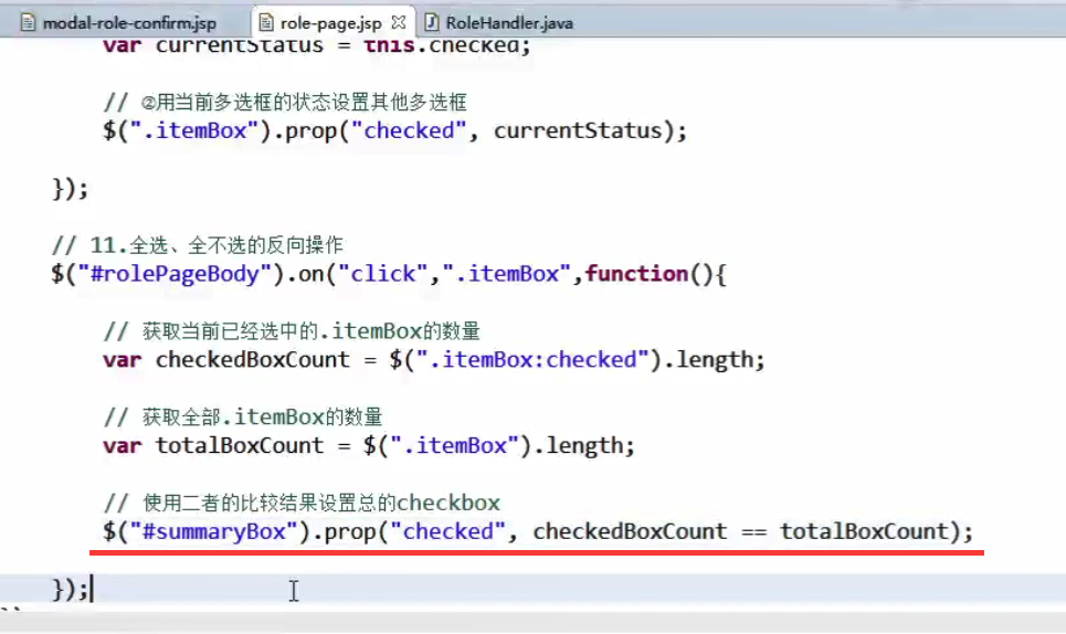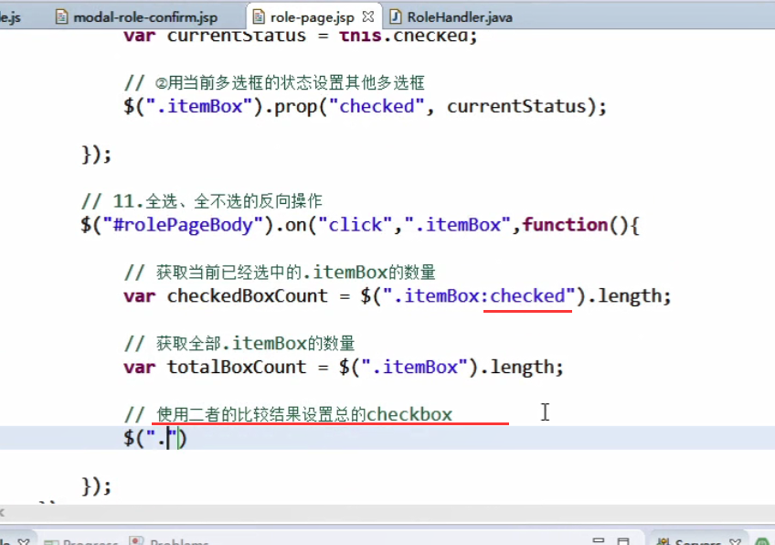 首先要给这个全选按钮绑定单击函数  正确的在这