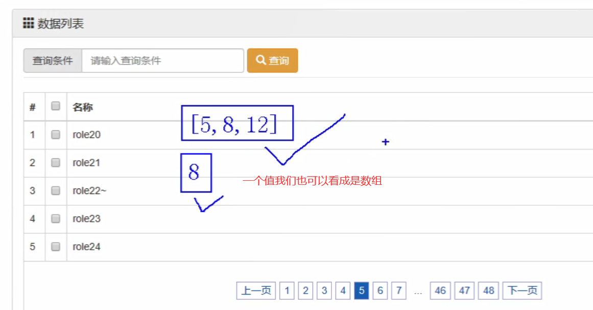 我们想想,我们当然可以写两个方法来进行单条删除和批量删除 但是我们其实也可以合并成一套 这样又可以少写一些代码,节约社会资源 ( 单条数据删除是根据id,批量删除是根据一组id 即 数组 ,其实是可以遍历去单条删除的  后端只处理一种情况即可,就只处理数组的情况,在前端去做处理即可
