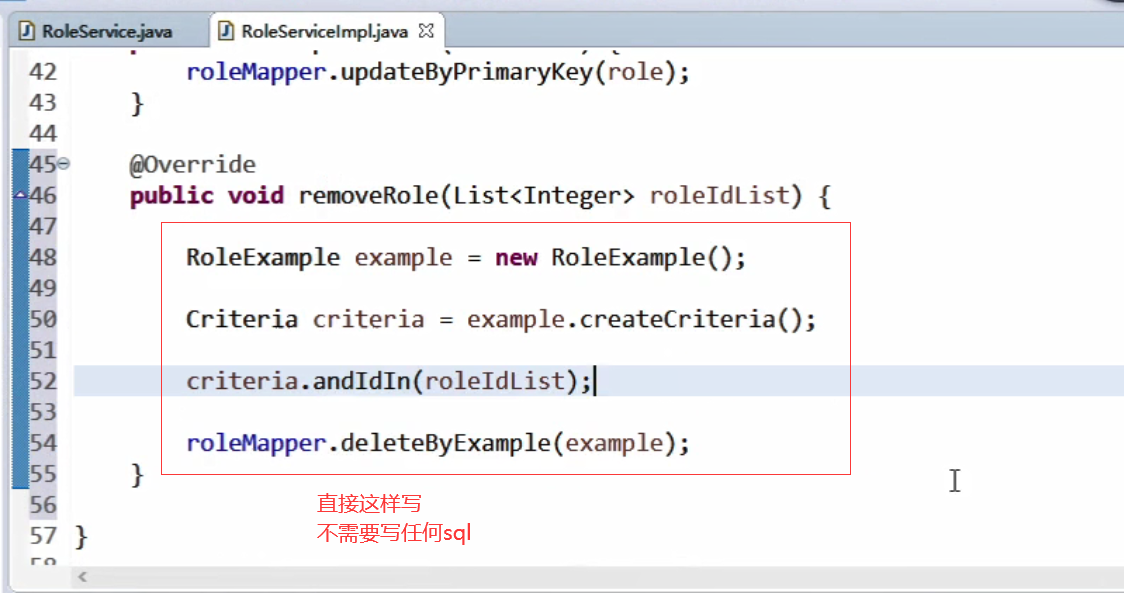 主要是SSM框架太强大了,我们简单增删改查,根本就不需要写sql 所以目前后端看起来特别简单,直接调用就好了 有两种方式,一种是循环  我们这里直接使用第2种方式,第一种方式也知道就行了我们这里主要是学习第2种方式,开阔视野   内部也是用了各种封装