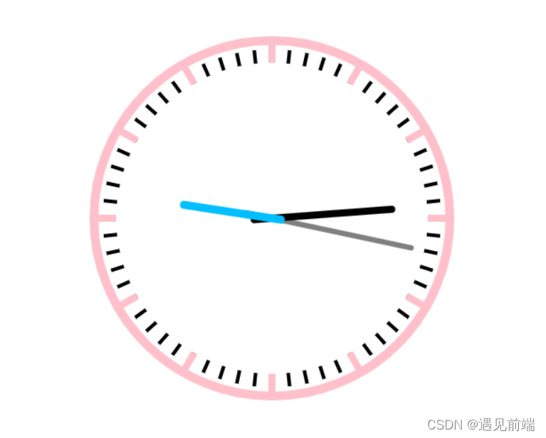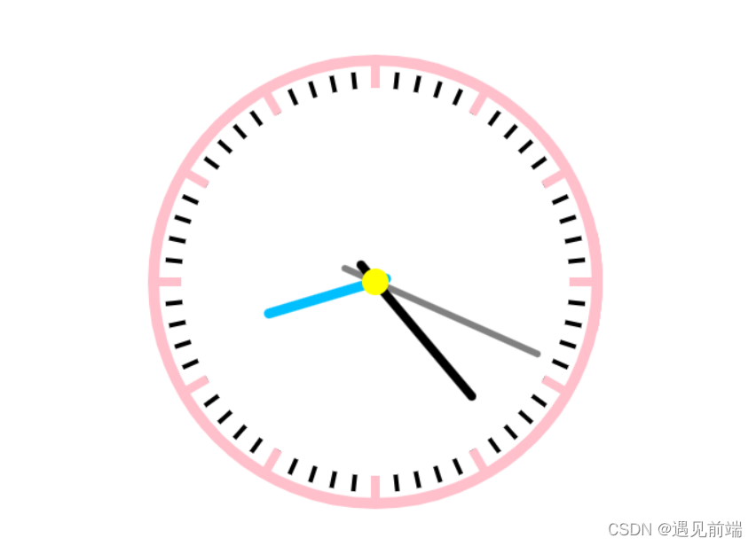 ? ? ? ?写到此处,时钟的整体轮廓就已经基本完成了,一边写一边查看效果是前端应该有的良好习惯哦。那我们来看看写到此处应该有什么效果吧。写到此处,每次刷新后可以看到时钟的秒针发生了转动,但是通过控制台打印的本地时间发现并不符合。怎么解决这个问题呢?