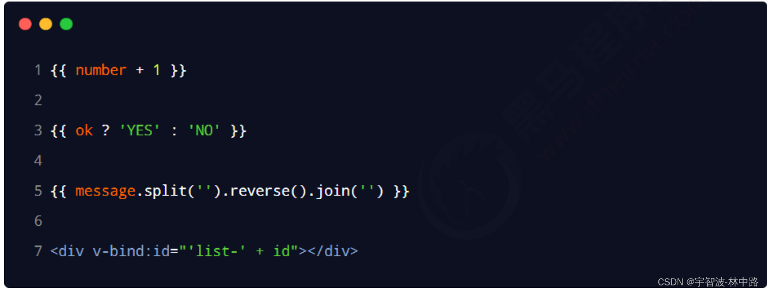<div>1 + 2 的结果是:{{ 1 + 2}}</div>