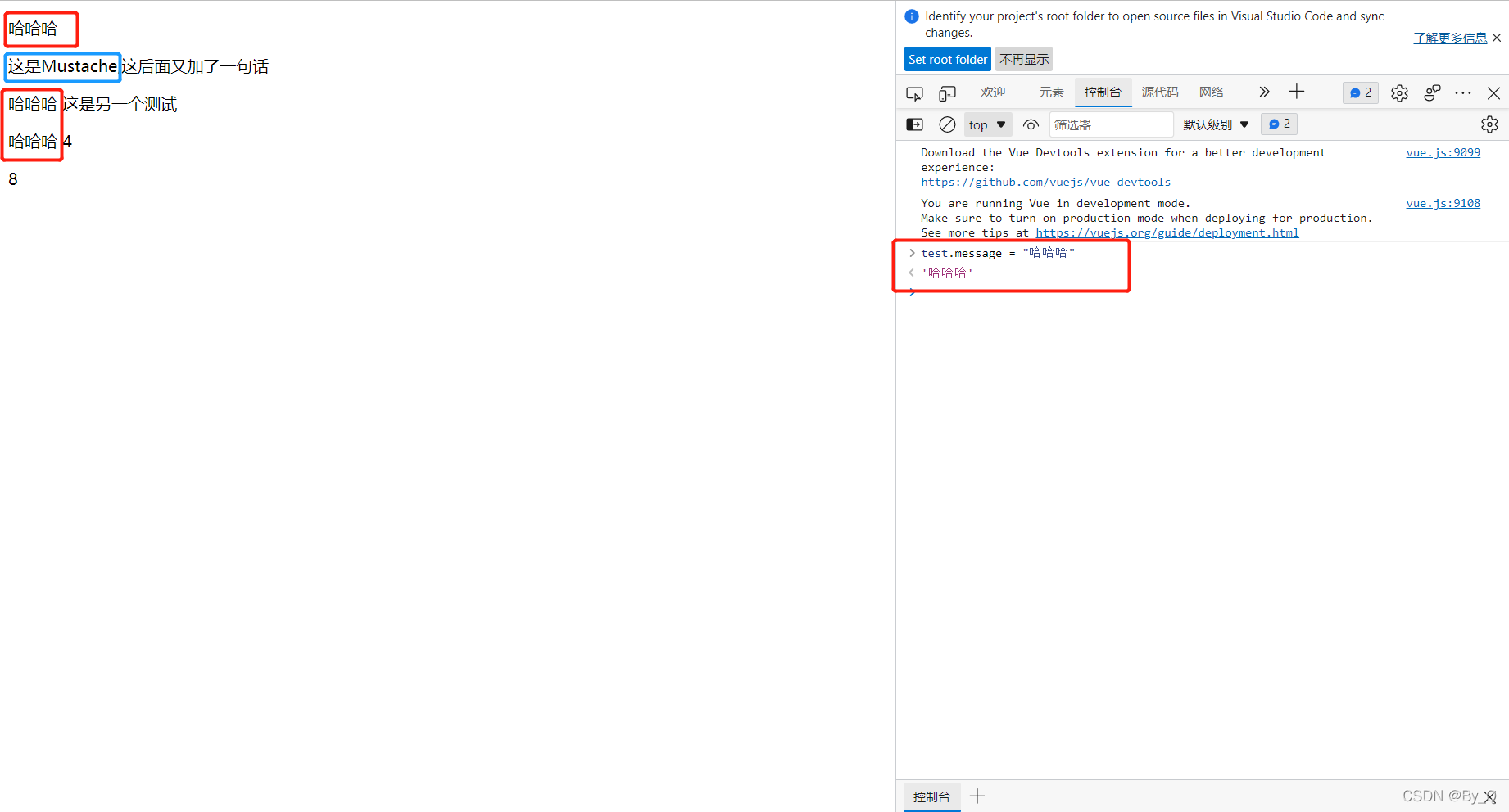 ?结果会先显示{{text}},一秒后再显示结果:“这是另一个测试”,模仿网络卡顿加载不出来的情况,为了避免这种情况的发生,加入css代码
