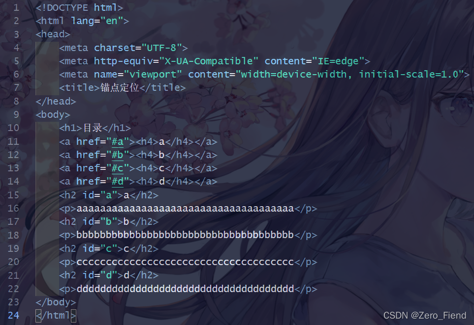 - 找到目标位置标签,里面添加一个id属性 = 刚才的名字,如:<h3 id="two">第二集介绍</h3>