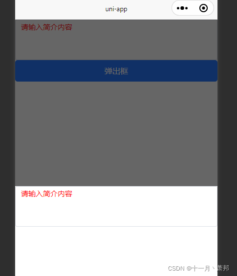 <u-input v-if="isShowInput" v-model="value" type="textarea" border :height="130" placeholder="请输入简介内容" placeholder-style="color:#ff0000" />