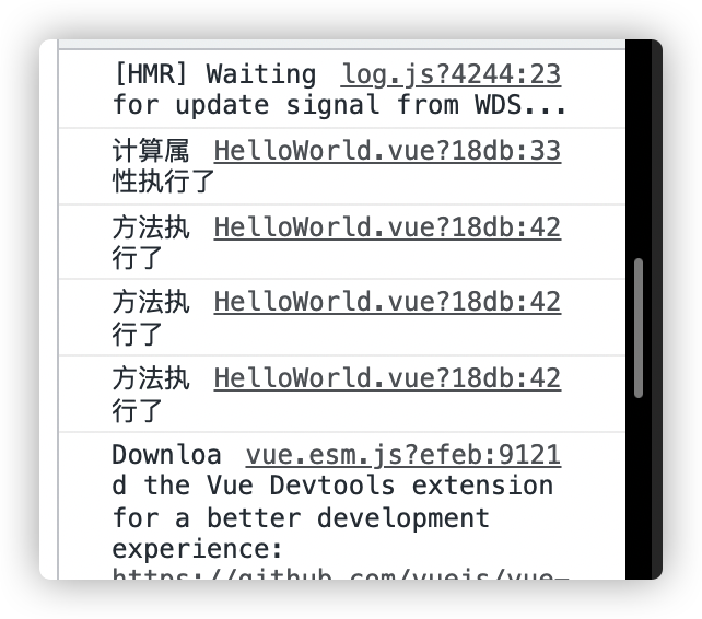 在页面中调用了相同次数,在计算属性和方法中都进行了log,在控制台里:  在方法中,调用了几次就log了几次,但是计算属性只执行了一次。原因是: