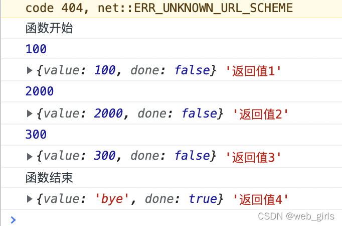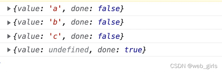 done (boolean) :如果迭代器可以产生序列中下一个值,为false(可以认为没有done这个属性)