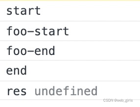 console.log('res',res); // then的执行取决于foo是否执行完,then的执行加入微任务的队列里