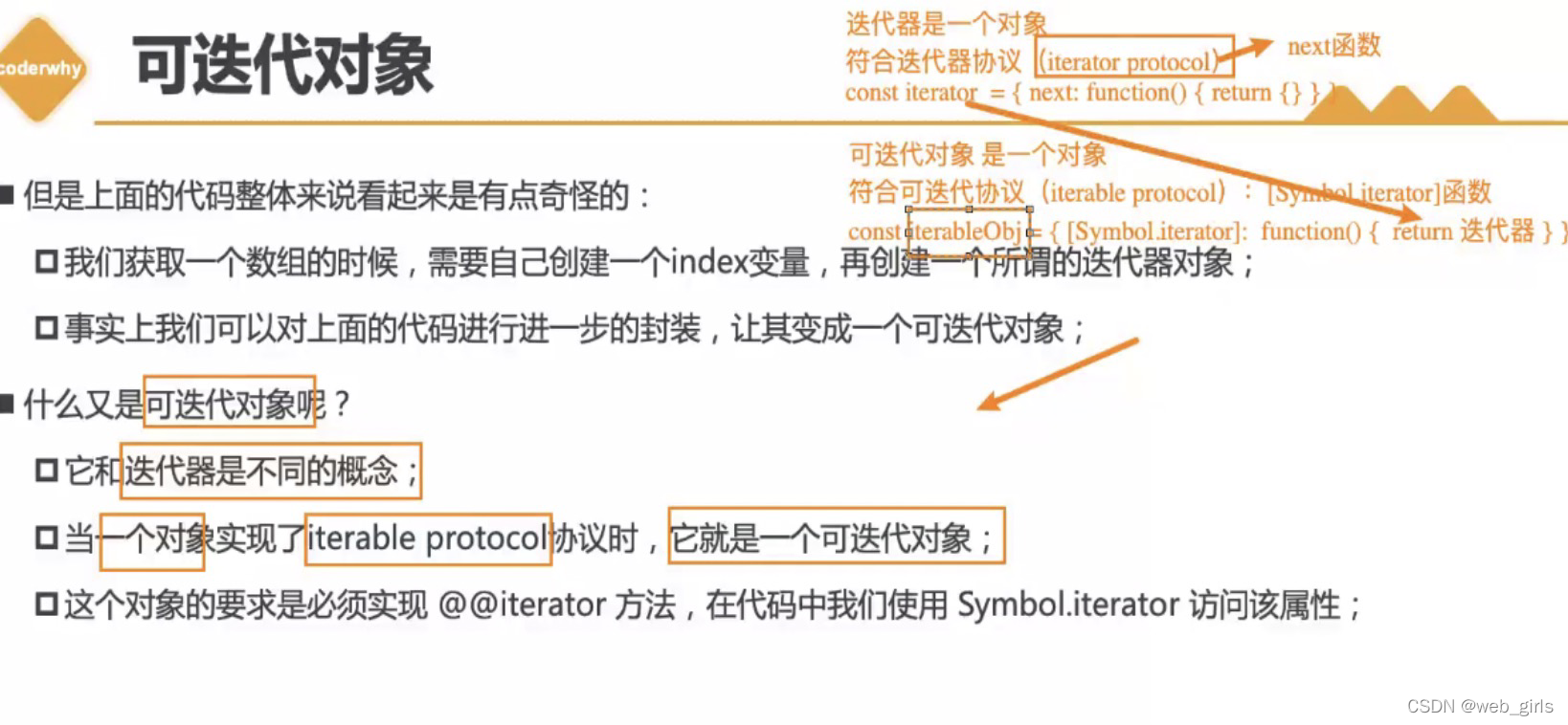 在js中,迭代器也是一个具体的对象,这个对象需要符合迭代器协议。