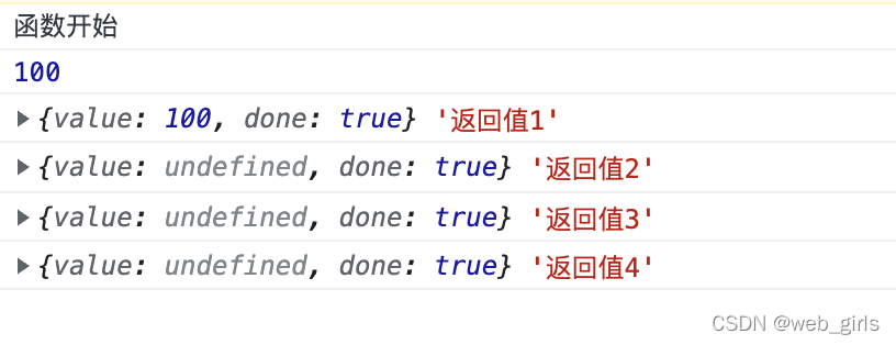 value:迭代器返回的任何JavaScript值,done为true可省略