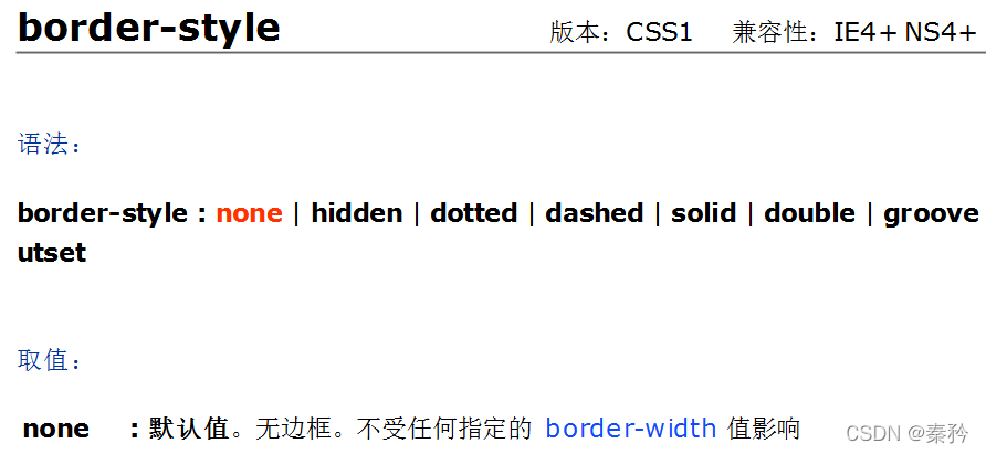 2、要善于查文档,如果先让边框为红色,在相继设置边框颜色和边框尺寸后都不显示,原因是边框的border-style样式默认none,即无边框。