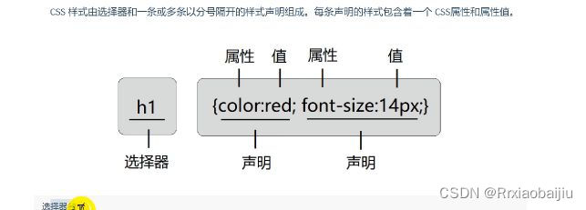 [1]css的定义: ?? ??? ?选择器名字{ ?? ??? ??? ?属性名:属性值; ?? ??? ??? ?属性名:属性值; ?? ??? ??? ?... ?? ??? ??? ?}