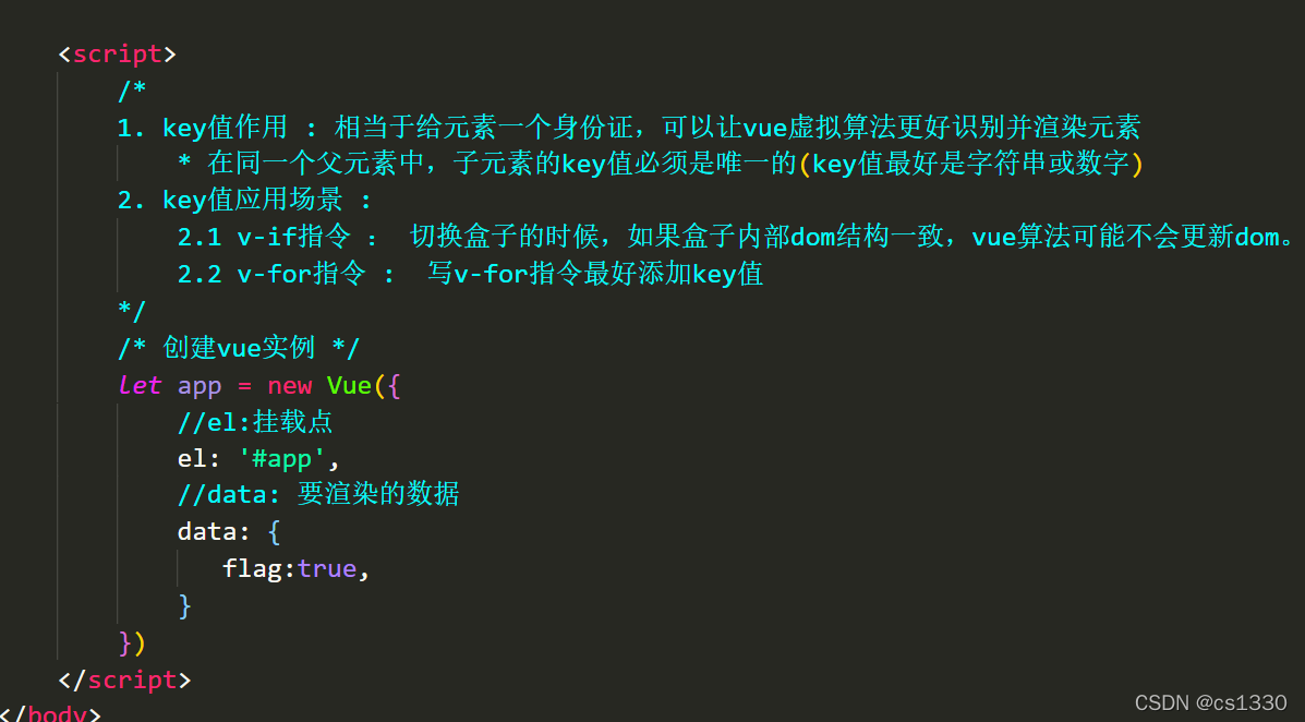 ? ? ? ? v-if 指令:切换盒子的显示隐藏的时候,如果盒子内部的DOM结构一样,vue的算法可能不会更新DOM,所以要给盒子设置一个key属性,具有唯一性