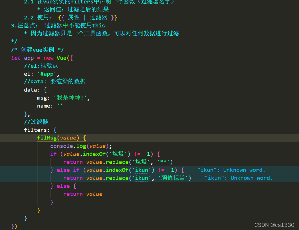 ? ? ? ? 2.1:在vue实例的filters对象中声明一个函数(过滤器名字)