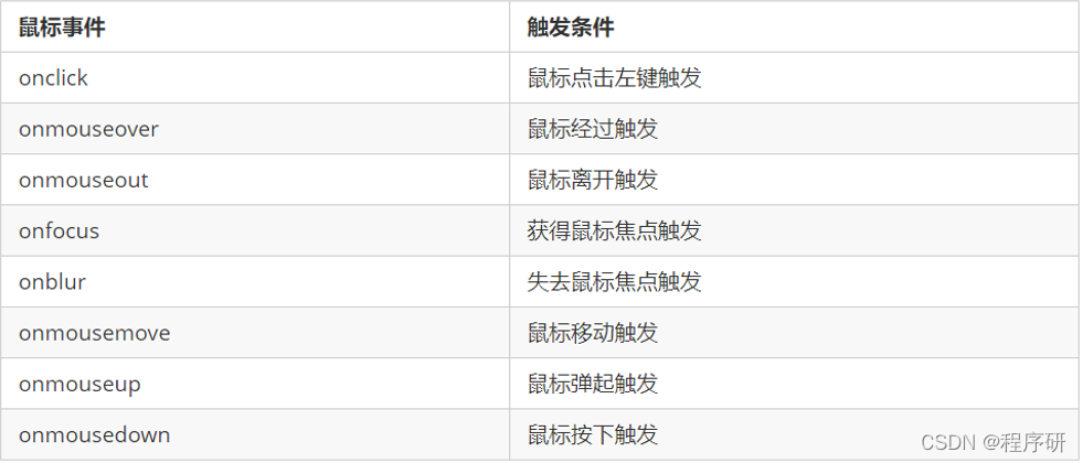 - 有些事件是没有冒泡的,比如 onblur、onfocus、onmouseenter、onmouseleave