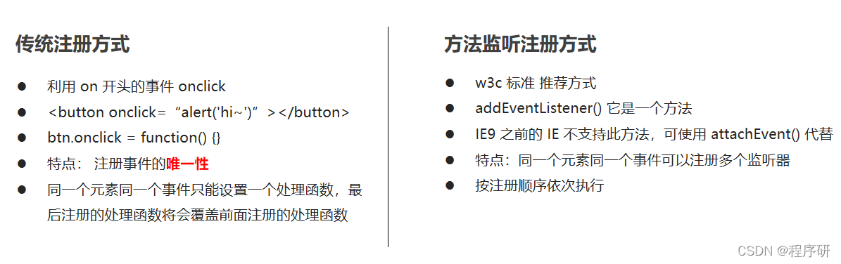 eventTarget.attachEvent()方法将指定的监听器注册到 eventTarget(目标对象) 上,当该对象触发指定的事件时,指定的回调函数就会被执行。