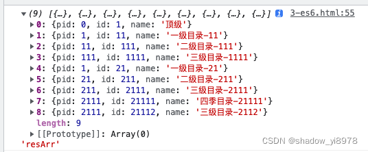 {id: 1111, pid: 111, name: '三级目录-1111'} // 4