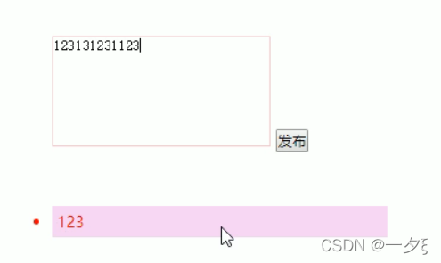 首先用户在输入框中输入内容,按下发布按钮,内容到下面的li中,并且清空输入框中的内容
