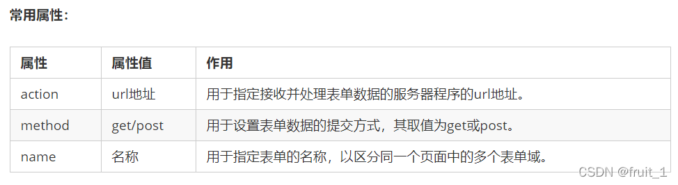 <form action="url地址" method="提交方式" name="表单域名称">各种表单元素控件</form>