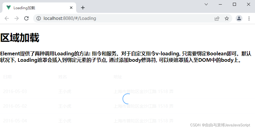 <h4>在绑定了v-loading指令的元素上添加element-loading-text属性, 其值会被渲染为加载文案, 并显示在加载图标的下方。类似地, element-loading-spinner和element-loading-background属性分别用来设定图标类名和背景色值。</h4>
