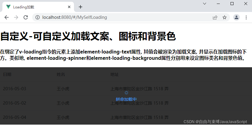 3.8. 运行项目, 访问http://localhost:8080/#/MySelfLoading?