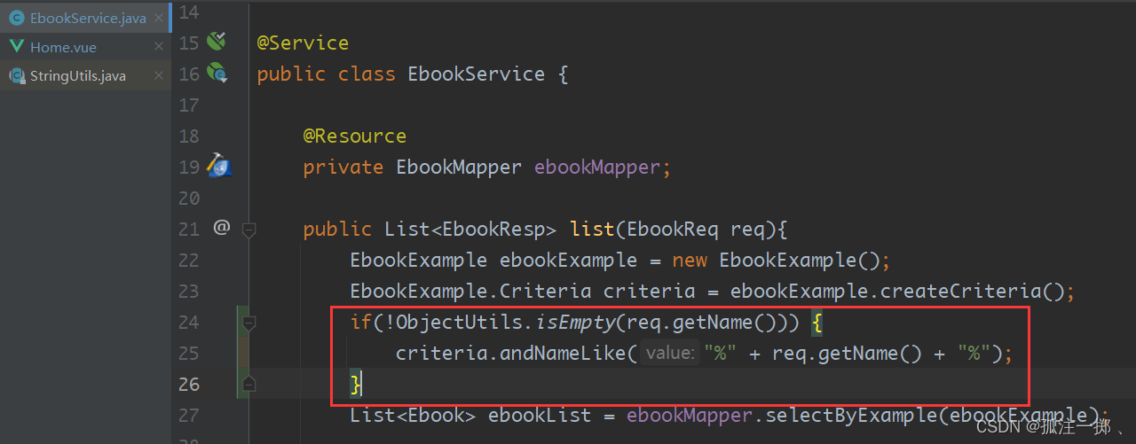 ?在EbookService.java中添加动态sql来使不加条件时查询全部的电子书信息。