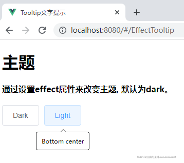 <el-tooltip content="Bottom center" placement="bottom" effect="light">