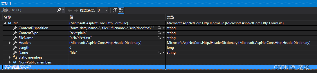 ????????通过代码可以发现 file.FileName 字段就包含了文件的完整路径信息,调试监视文件对象: