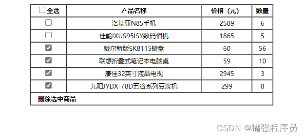 <td colspan="4" style="text-align:left; font-weight:bold; padding-left:15px;" >删除选中商品</td>