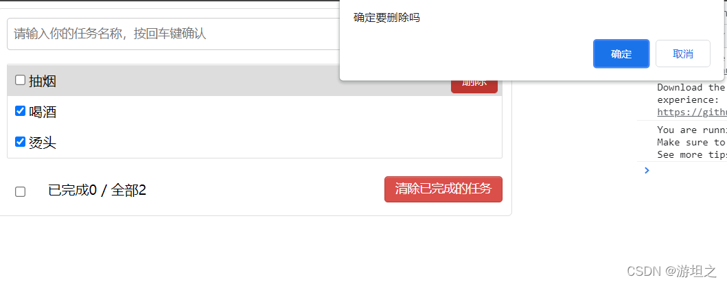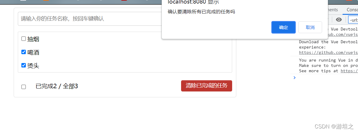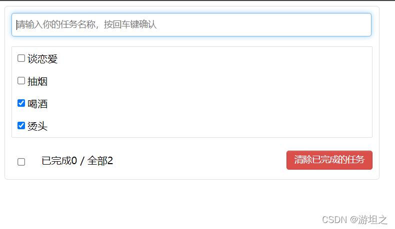 <button class="btn btn-danger" @click="clearTask">清除已完成的任务</button>