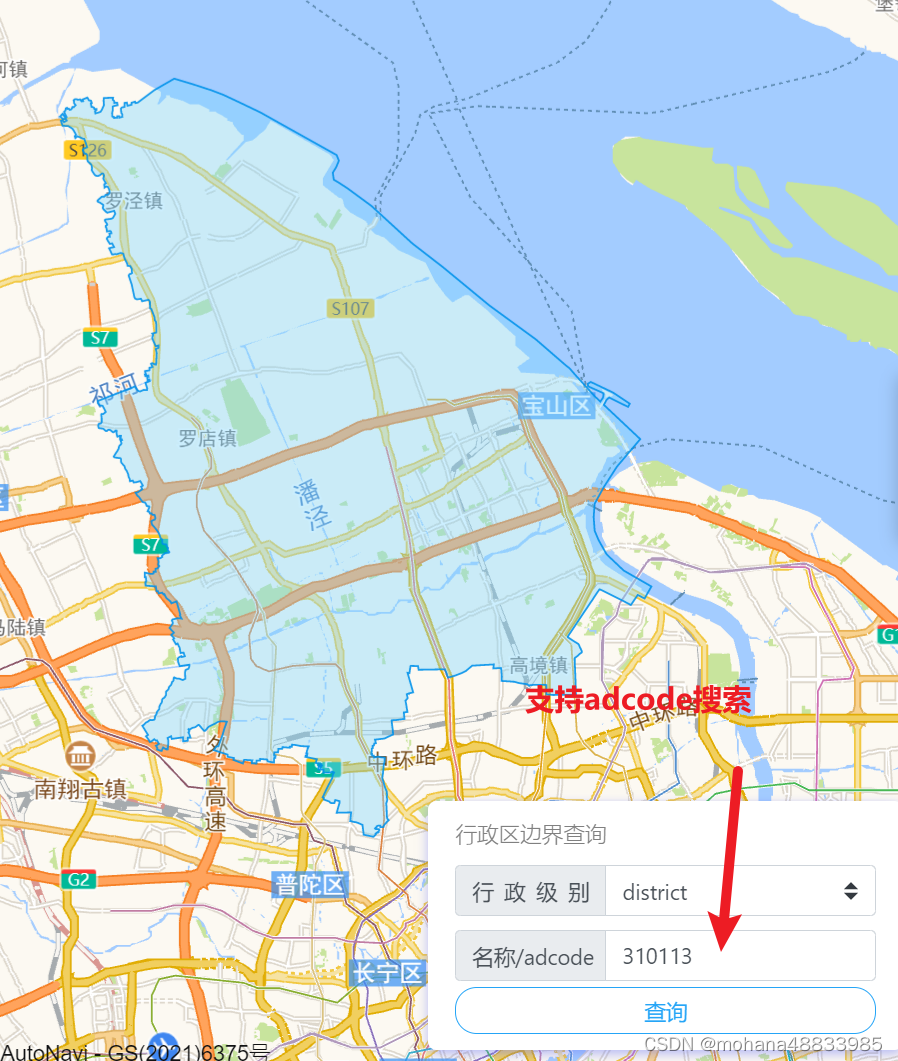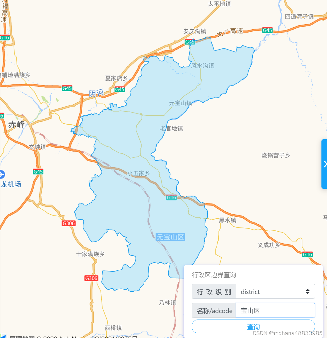 当搜索宝山区时,会定位到赤峰市的元宝山区👇,然而想要的是上海市宝山区。