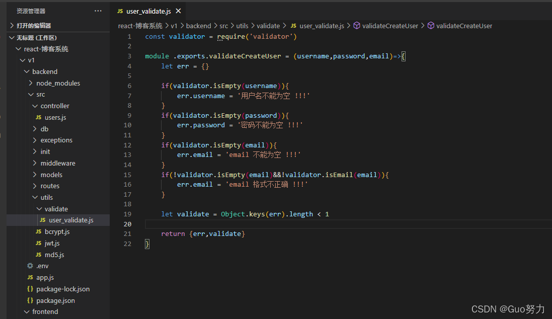 安装完成后在工具包文件夹下简历一个校验文件夹并创建一个校验文件?user_validate.js