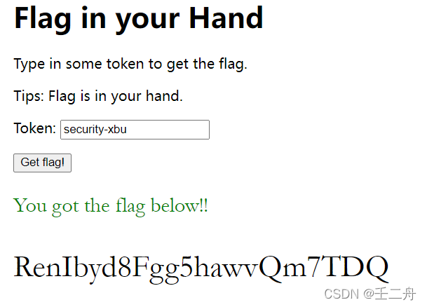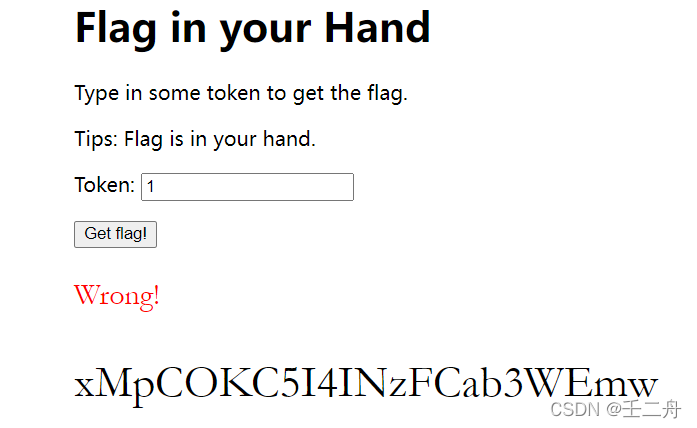 t.innerText = !!ic ? "You got the flag below!!" : "Wrong!";//判断ic是true还是flase