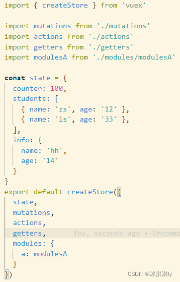 新建src/store/index.js? ?(先这样,后边再拆分目录结构,一步一步来)
