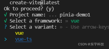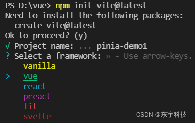 vite可以创建多种程序。这里选择vue,和ts,创建好了,再安装pinia