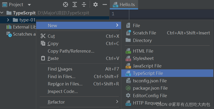 ?右击目录?选择NEW ,找到TypeScript File 创建TS文件