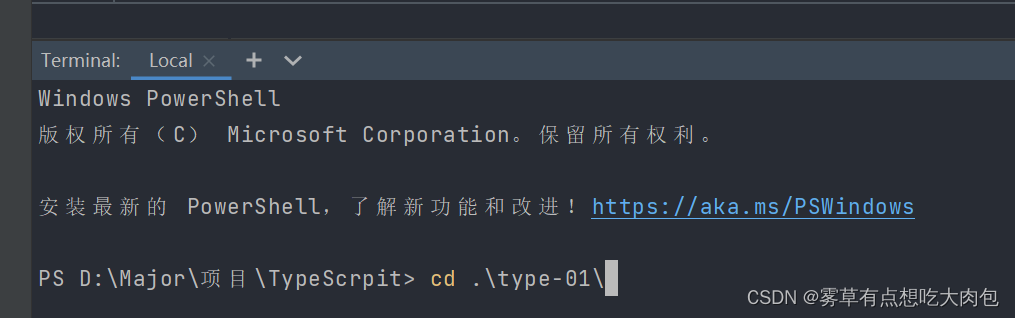 切换控制台路径输入:? ?cd type-01后按Tal键可以自动补全