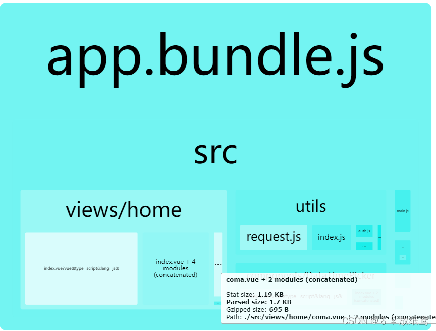 我们也可以通过打包后的report.html来查看效果,如下图(可以通过vue-cli-service build --report命令生成report.html文件)