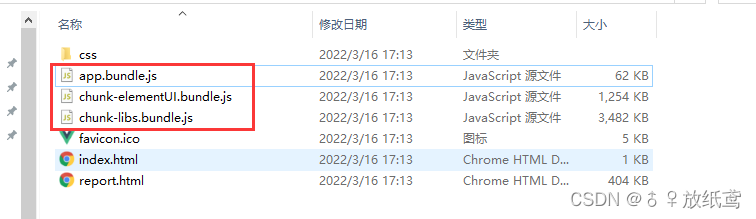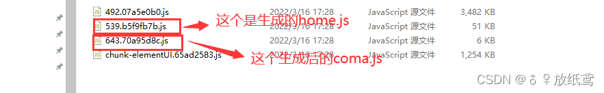 打包后生成app.bundle.js,还额外生成一个js文件夹,文件夹包含两个js文件分别对应两个组件,如下图