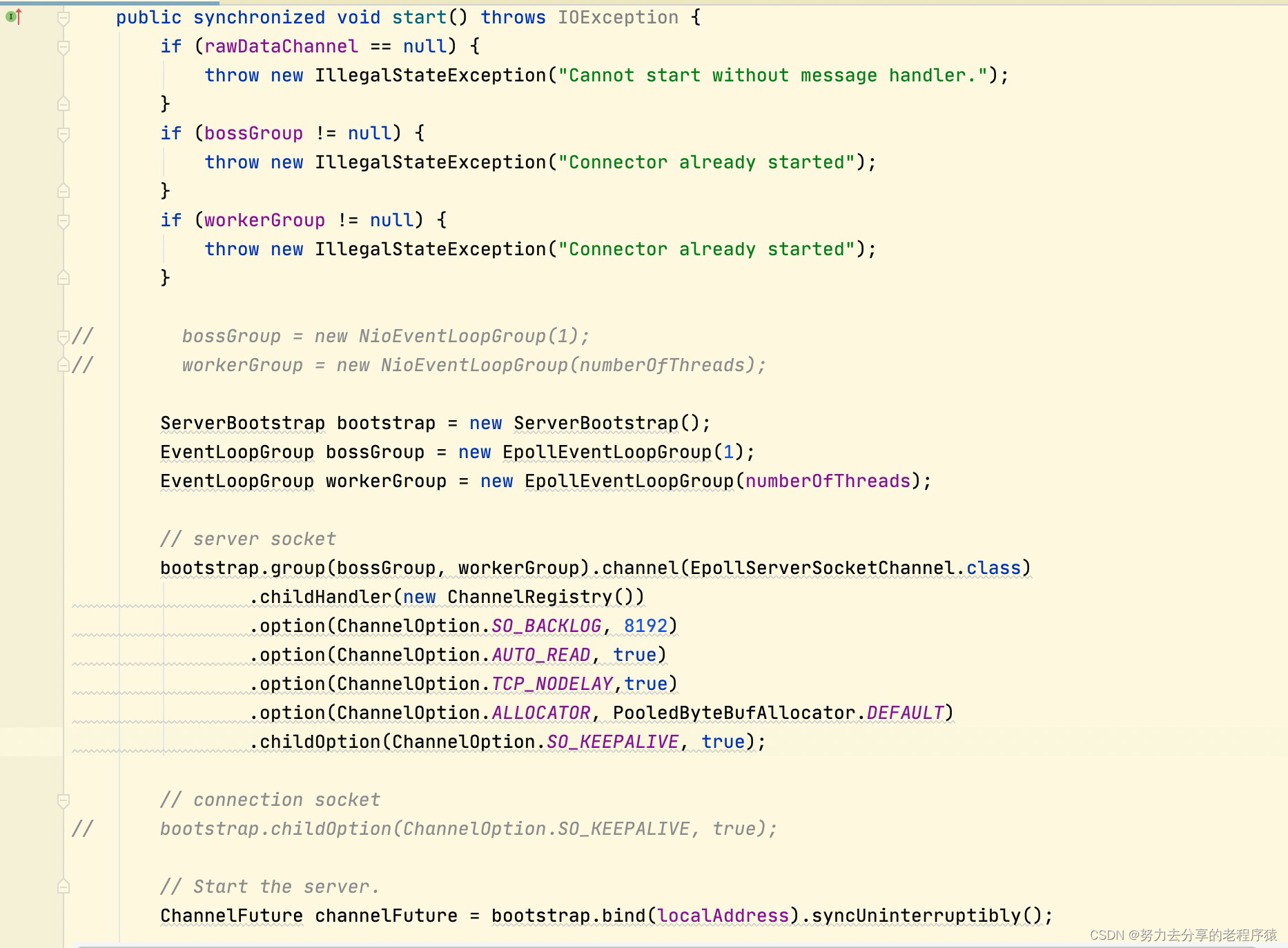为了照顾一些初学者,我们就从Netty的启动类开始 ServerBootstrap,如果基于Netty 开发高性能的服务来说,ServerBootStrap 一般是我们的第一个接触的类。