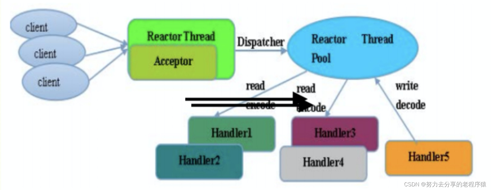 EventLoopGroup .一个就是大家经常听到的Boss 线程,另外一个叫做work线程,借图一张,相信大家都很熟悉。