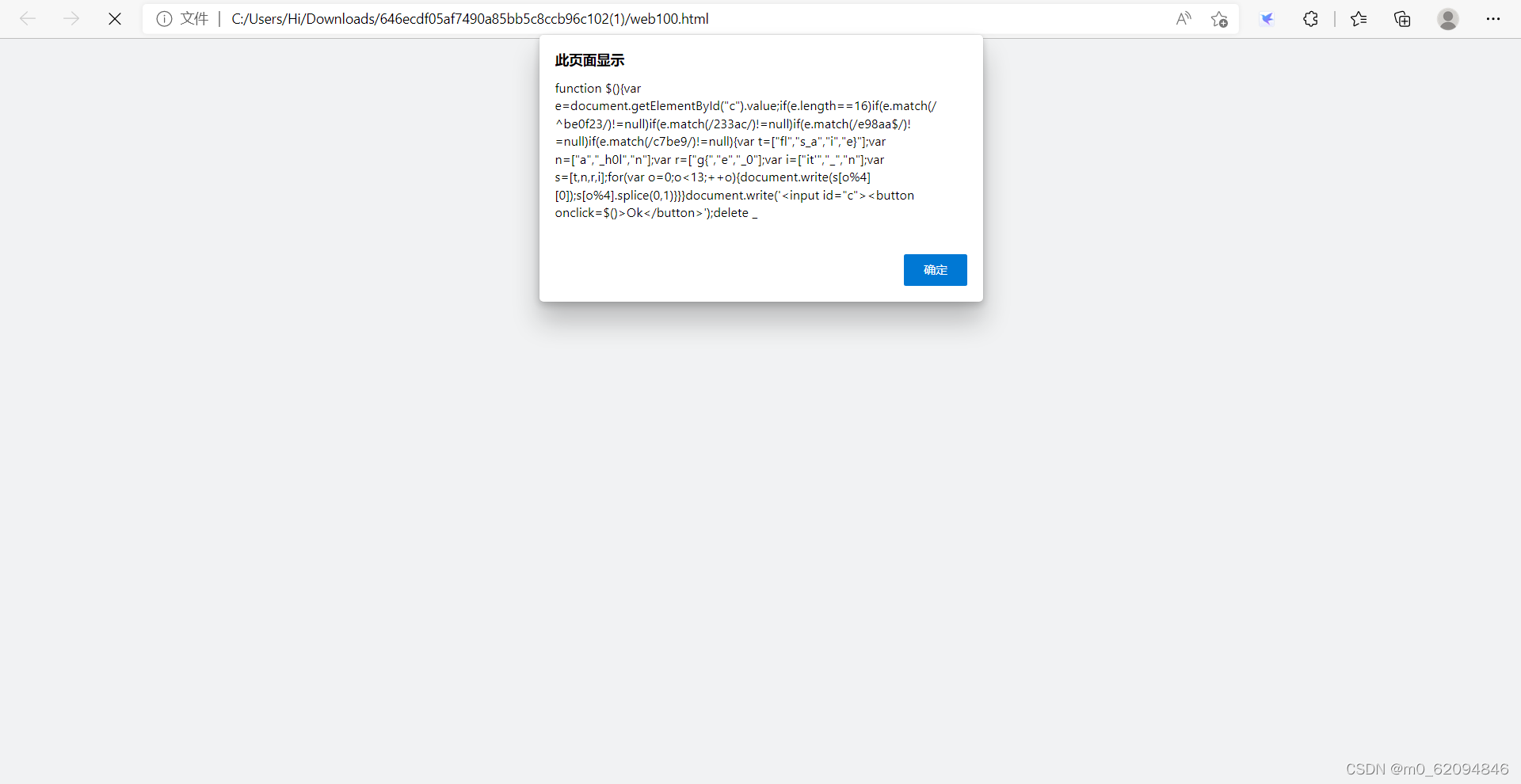 下载文件后是一堆乱码,但是可以看出是js写的,把文件后缀改成html,再把eval改成alert