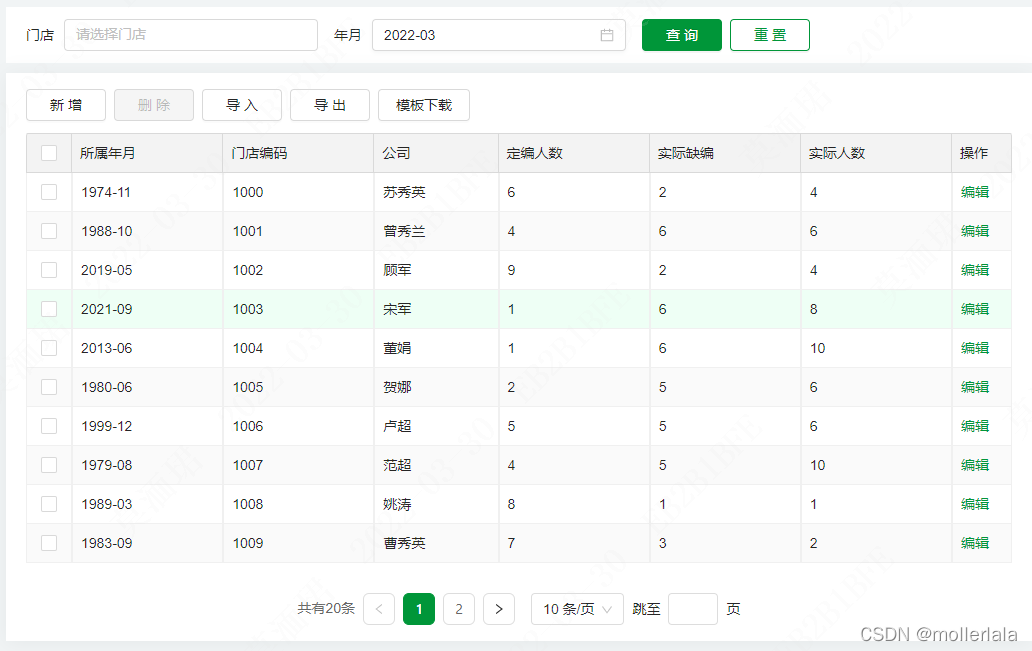 mock了列表数据,点击查询,返回mock出来的列表数据。