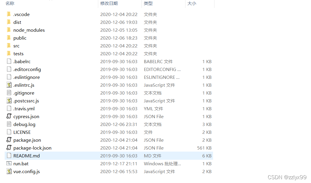 - dist:存放打包后项目资源的文件夹,每一次运行